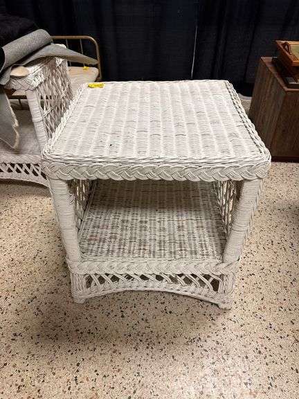 LOT 157 - Vintage White Wicker End Table 22" x 20" x 20"