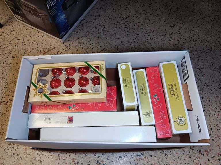 Box of Glass Christmas Ornaments