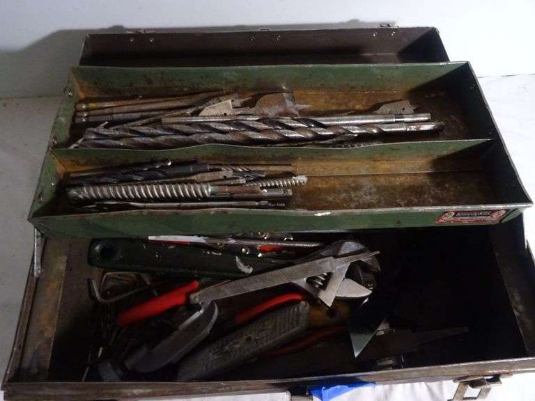 LOT 54 - Toolbox with assorted hand tools drill bits, files etc