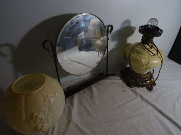 Standing Mirror & Vintage Globed Lamp Rose Pattern