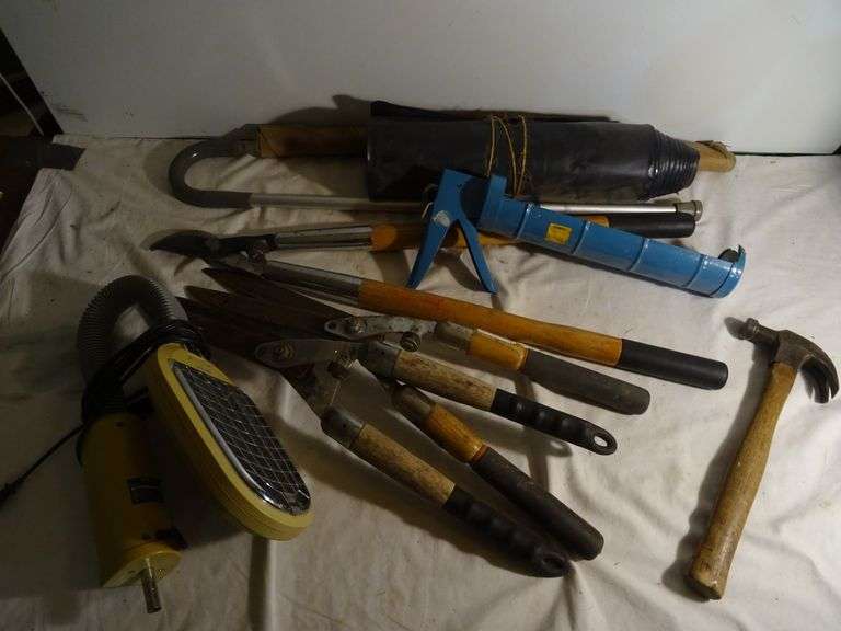 LOT 109 - Yard tools loppers and shears garbage bags and Light