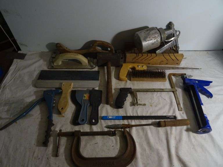 Clamp, Caulk Gun Hand Saw, Putty Knifes & Misc Tools