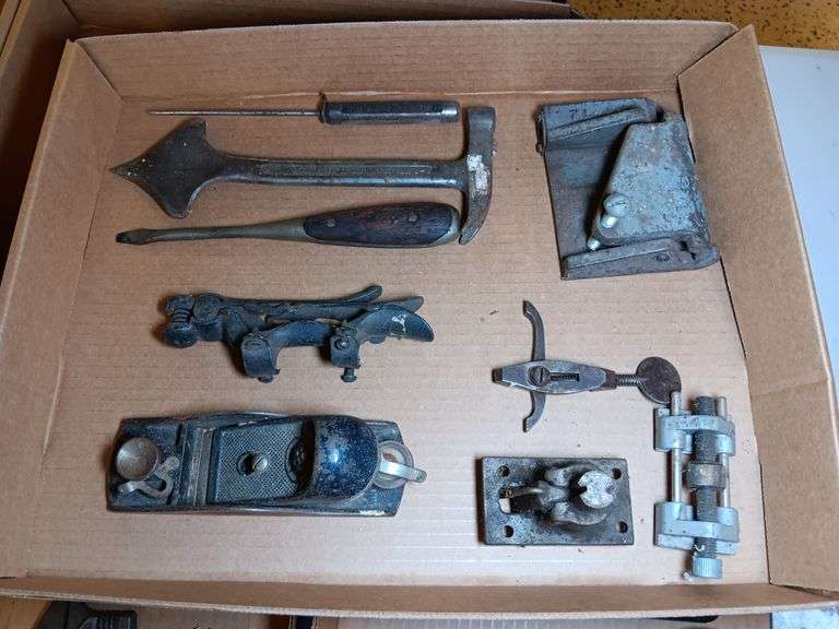 Vintage Crate Hammer, Wood Plane, Screwdriver and Other Items