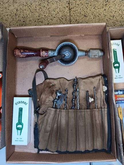 Osborne Arch Punch, Drill Bits in Case, and Antique Tool