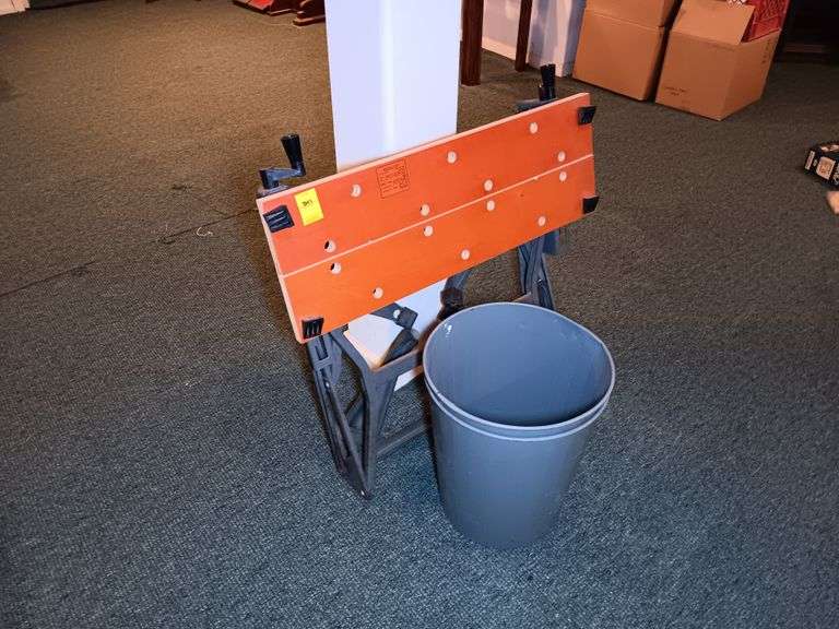 LOT B47 - Folding Workbench and Metal Trashcans