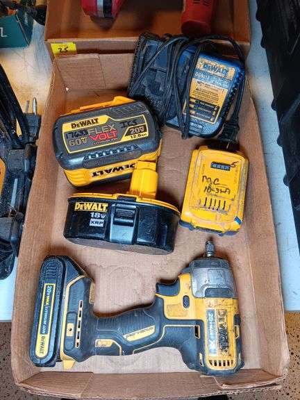 DeWalt Impact Wrench, DeWalt Battery Charger and (4) Assorted DeWalt Batteries