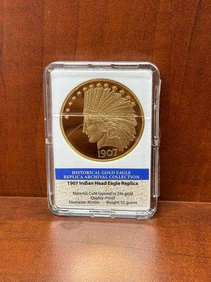 LOT 146 - 1907 Indian Head Eagle Replica 24K gold plated