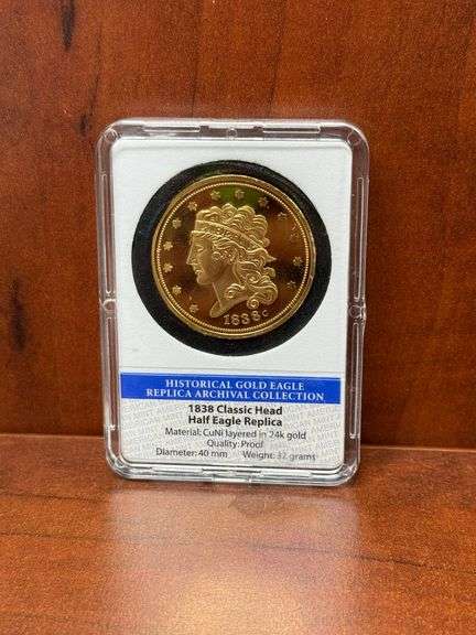LOT 144 - 1838 Classic Head Half Eagle Replica 24K gold plated