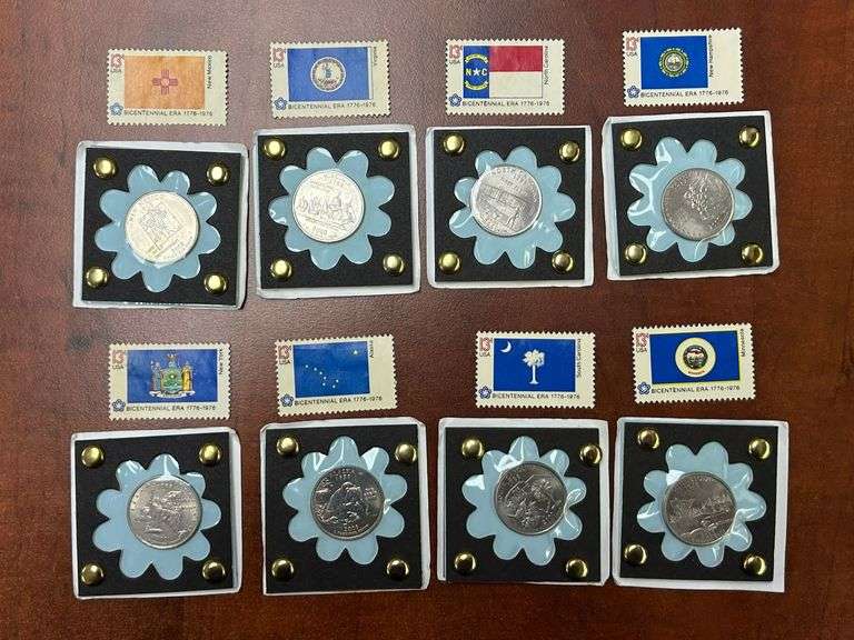 LOT 127 - State quarters (8) w/ uncancelled stamps from same state