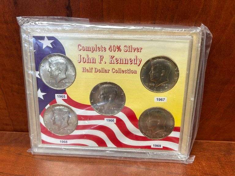 JFK Half dollars, 40% silver (5), in case