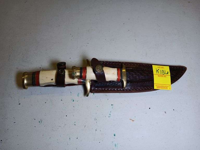 LOT K136 - Timber Rattler Dual Knife Set 7 1/2" Blade and 4" Blade with Leather Sheath