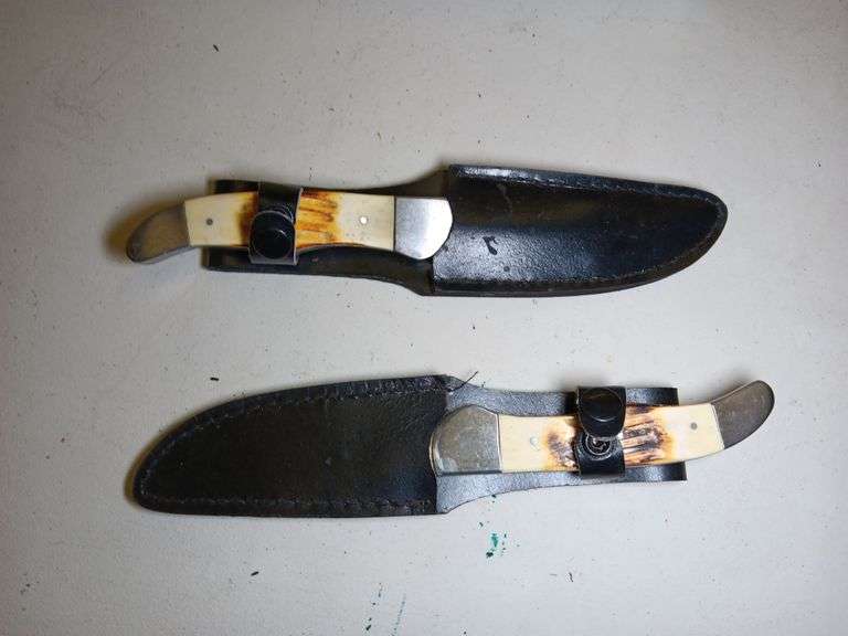 LOT K32 - (2) Bone Handled Knives 4 1/2" Blade with Leather Sheath's