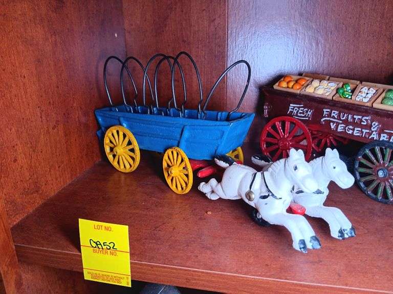 LOT CA52 - Cast Iron Two Horse Team and Wagon