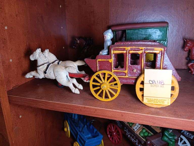 LOT CA48 - Cast Iron Two Horse Team and Stage Coach