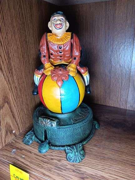 LOT CA38 - Cast Iron Clown on Ball Coin Bank